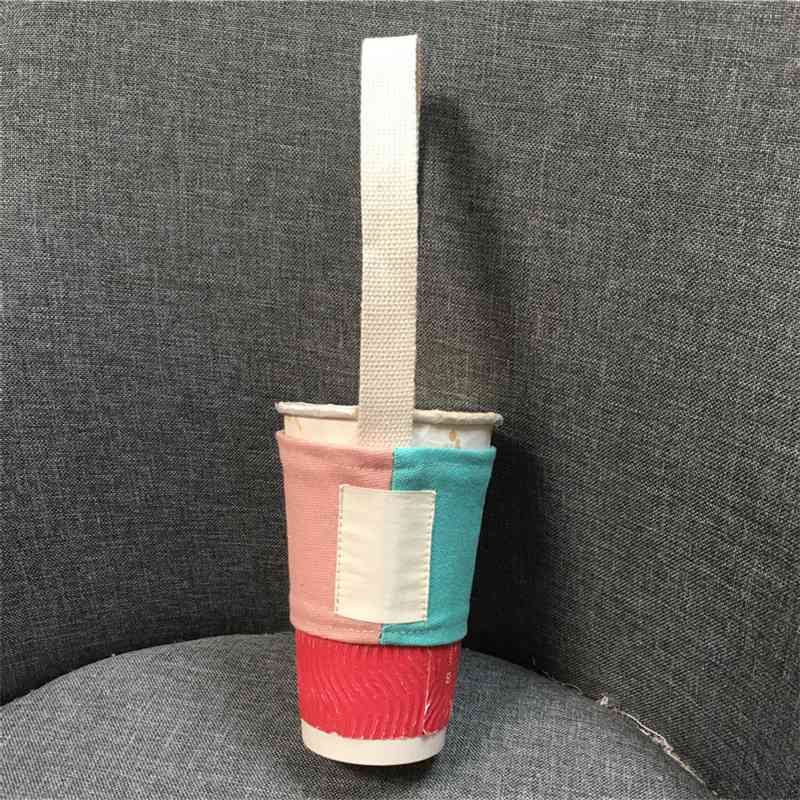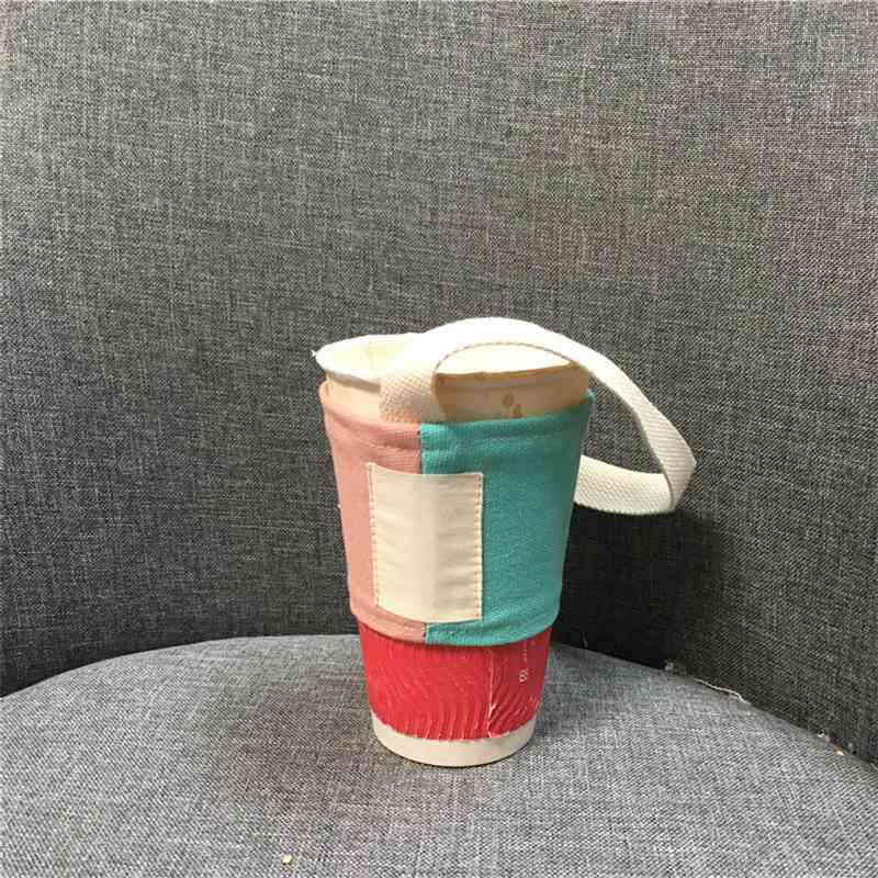 Color Contrast Patchwork Milk Tea Bag Color Matching Fashion Hand Cup Cover Milk Tea Small Belly Cover Drink Bag Coffee Cup Bag