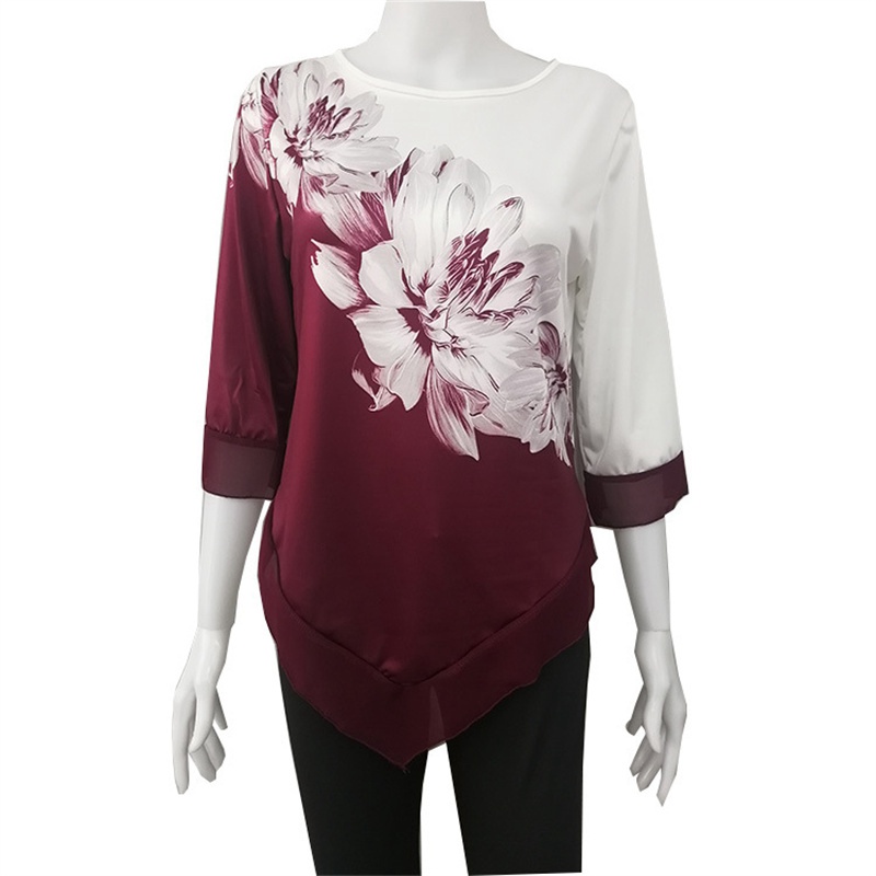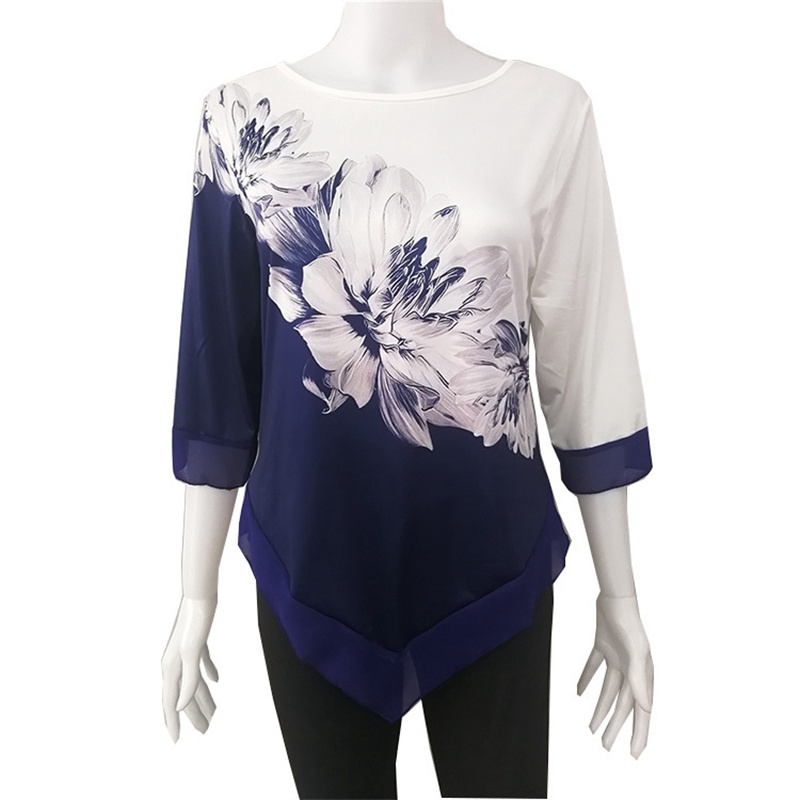 Fashion Street Spring/Summer 2024 Amazon Shirt European and American round Neck Loose Irregular Hem Blouse for Women