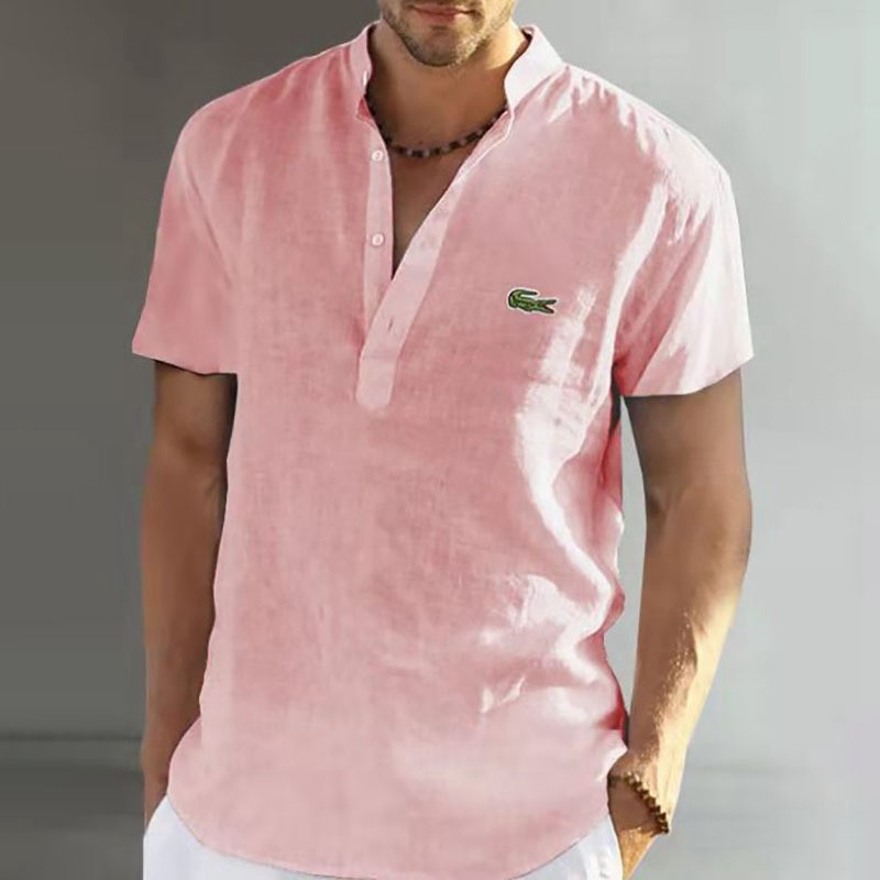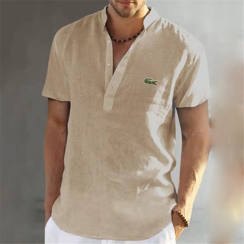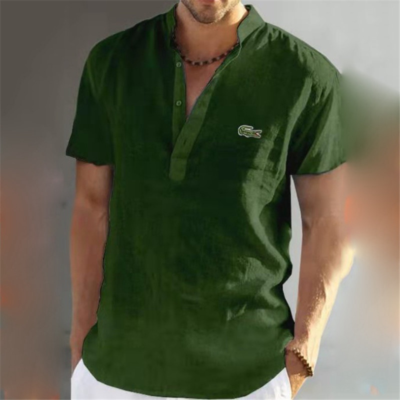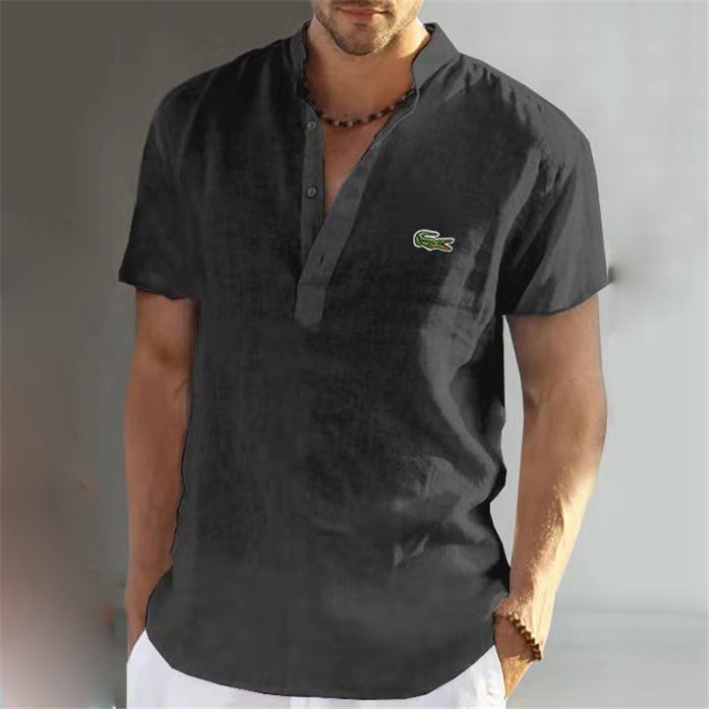 Mens Short Sleeve Linen Shirts Summer Solid Loose Casual Dress Shirt Blouse Tops