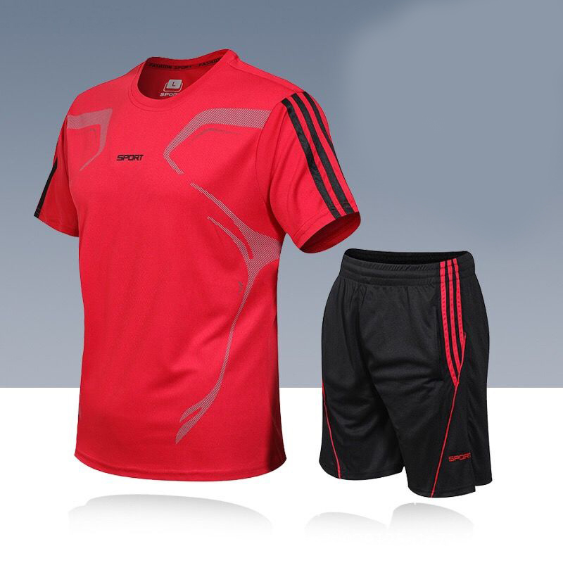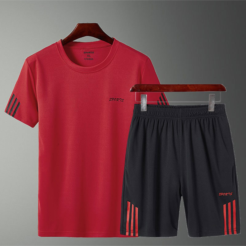 Men’s Sports Suit Men’s Summer Shorts Two-Piece Suit Men’s Quick-Drying Short-Sleeved T-shirt Sportswear Casual Pants Loose