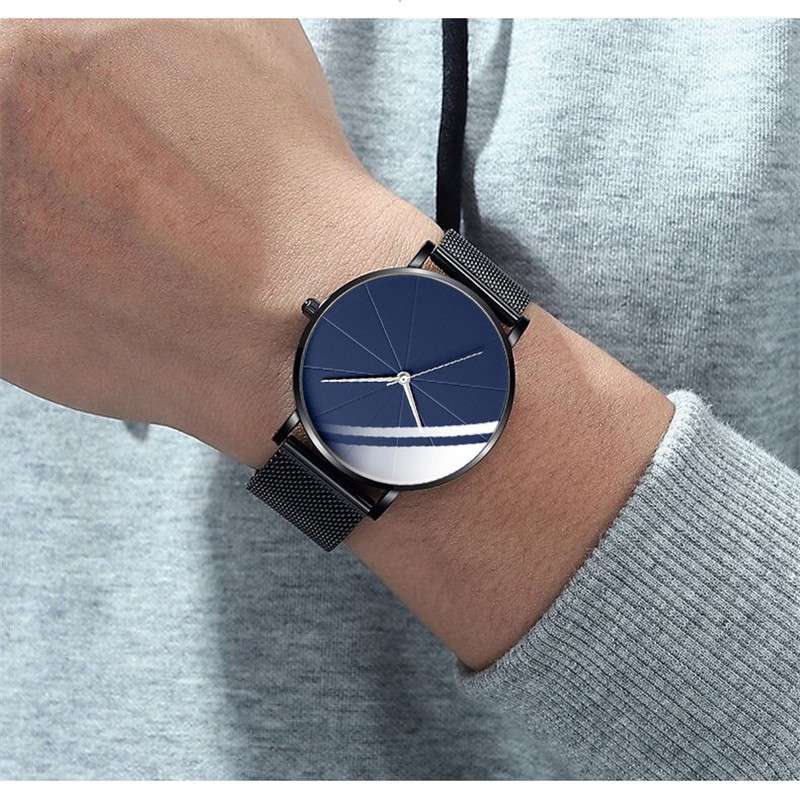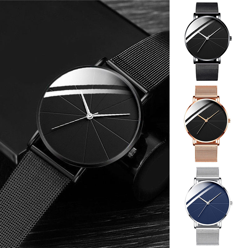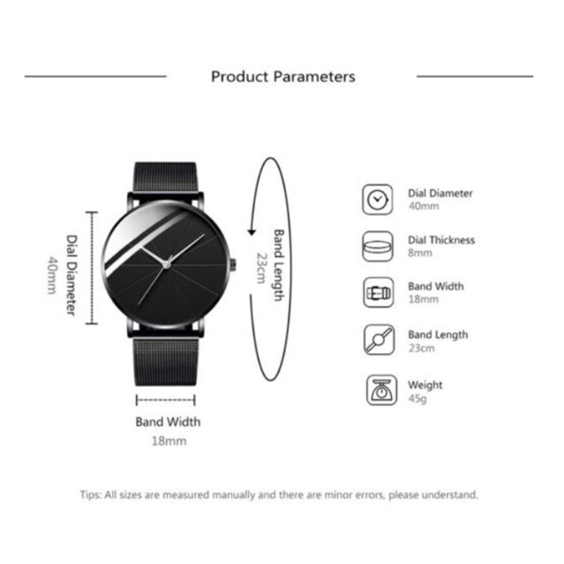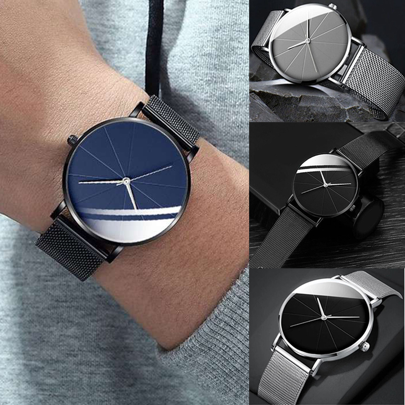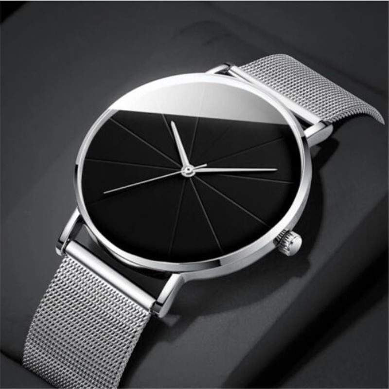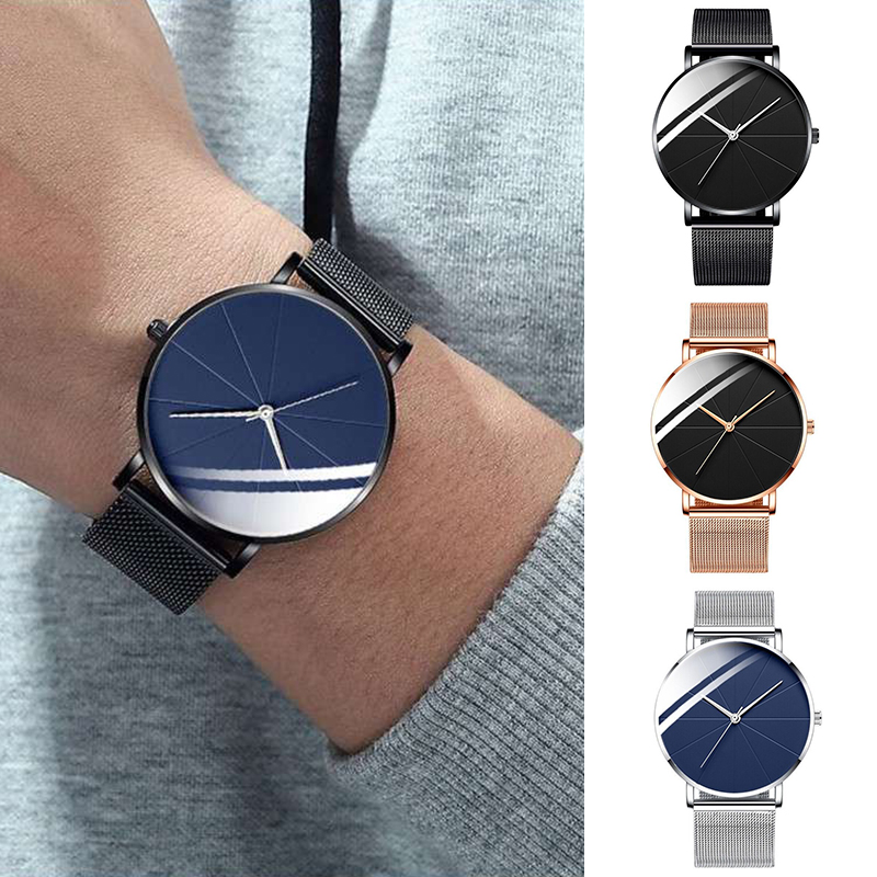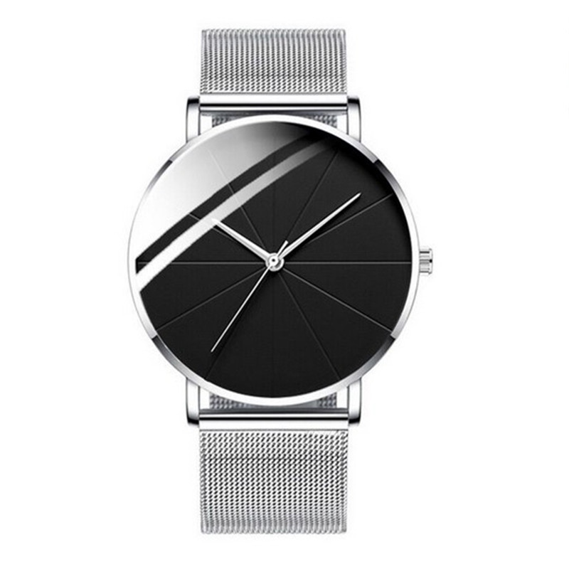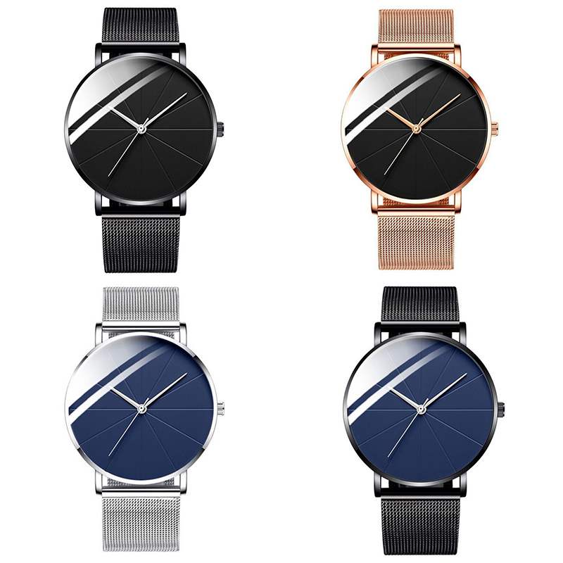 ZZ Men’s Ultra Thin Simple Watch Ultra Thin Mesh Strap Stainless Steel Quartz