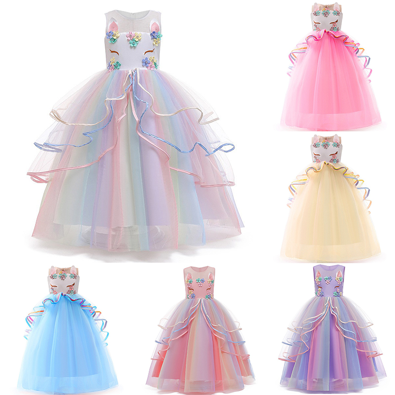Vintage Flower Girls Dress Children Princess Party Pageant Long Gown Kids Dresses for Girls Formal Clothes