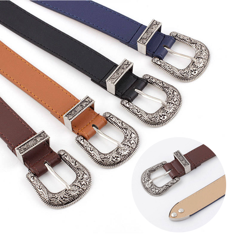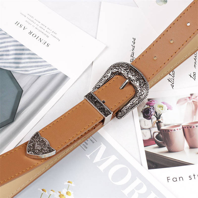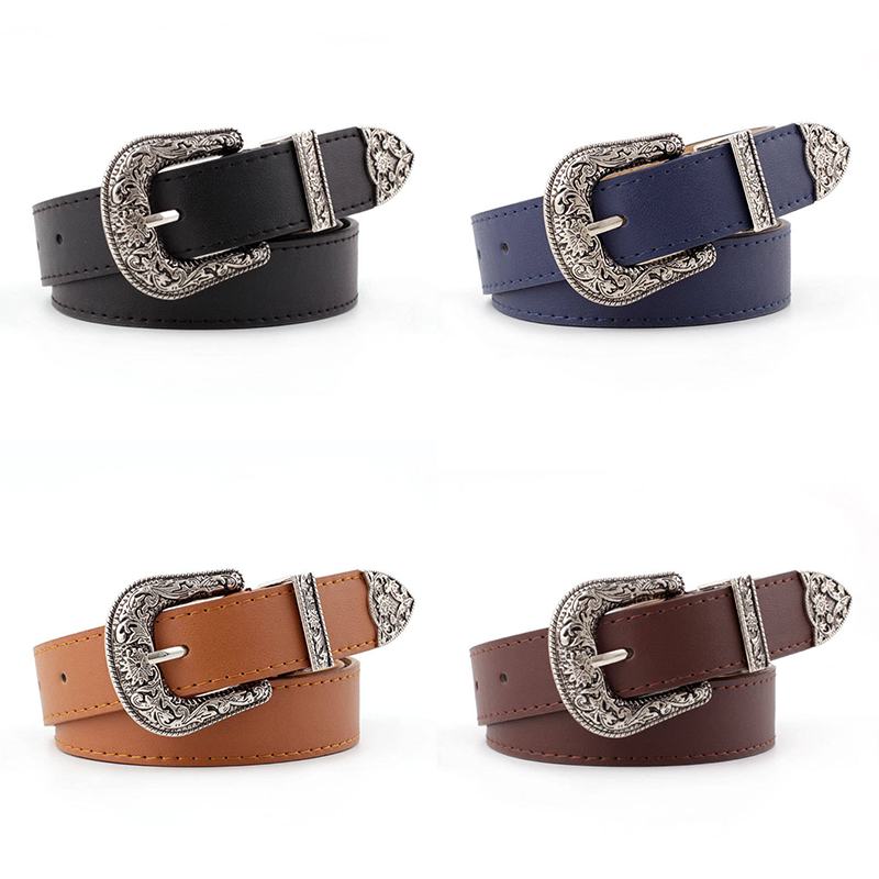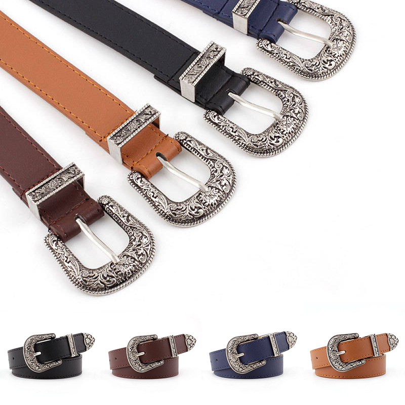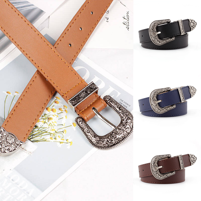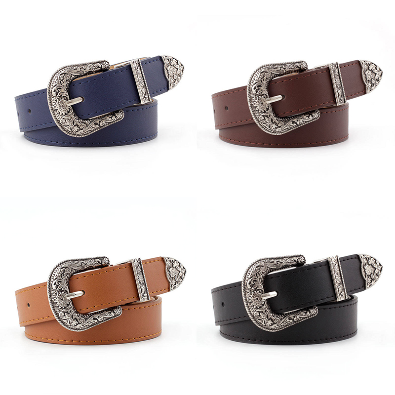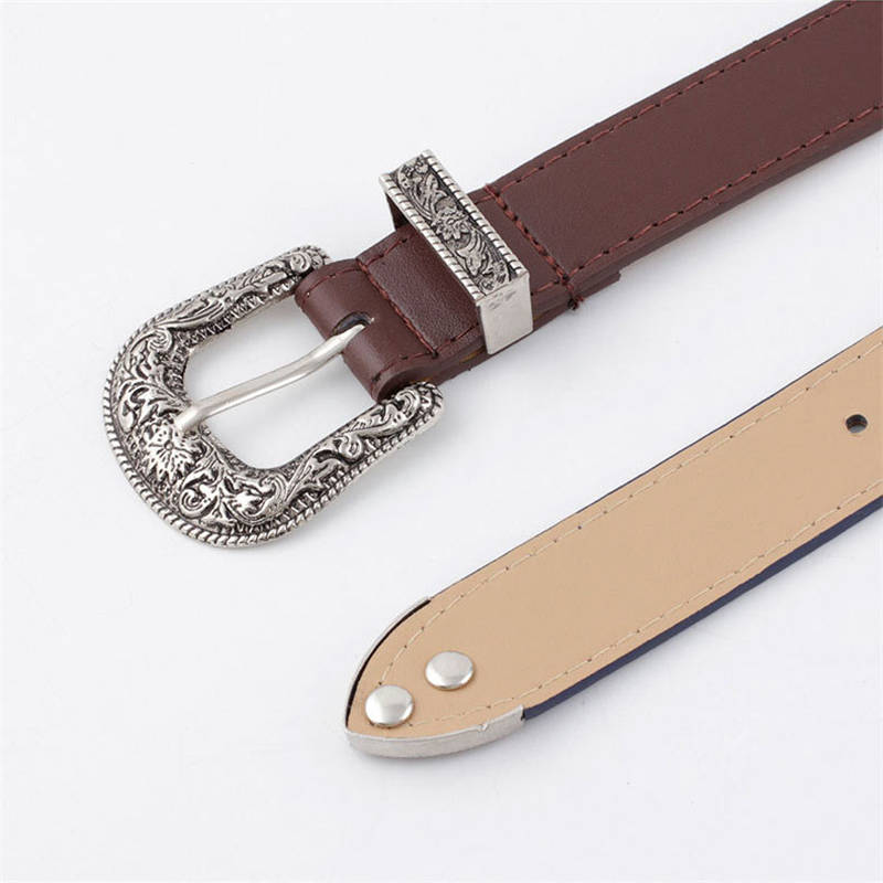 Z Women’s Waist Belt Lady Girl Faux Leather Western Vintage Metal Buckle Waistband